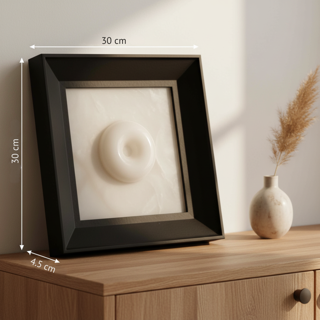 A study in balance and form, the Lunaro Onyx Frame transforms natural stone into sculptural serenity. Hand-carved from genuine white onyx and set within a sleek wooden frame, it captures the harmony of organic texture and contemporary design.